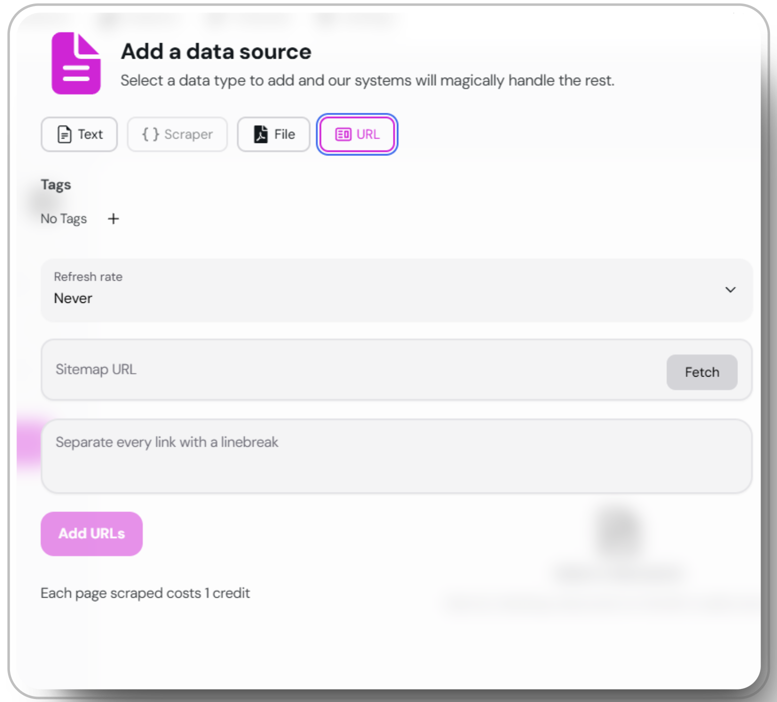 URL scraping is a powerful tool for automatically extracting data from websites to populate your knowledge base.