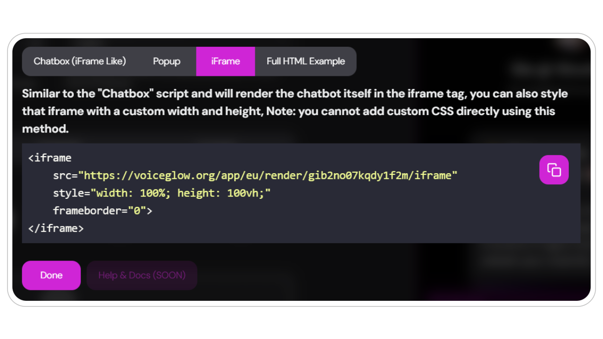 YOUR_AGENT_ID with your actual Eagle Agent ID.Customize Appearance
